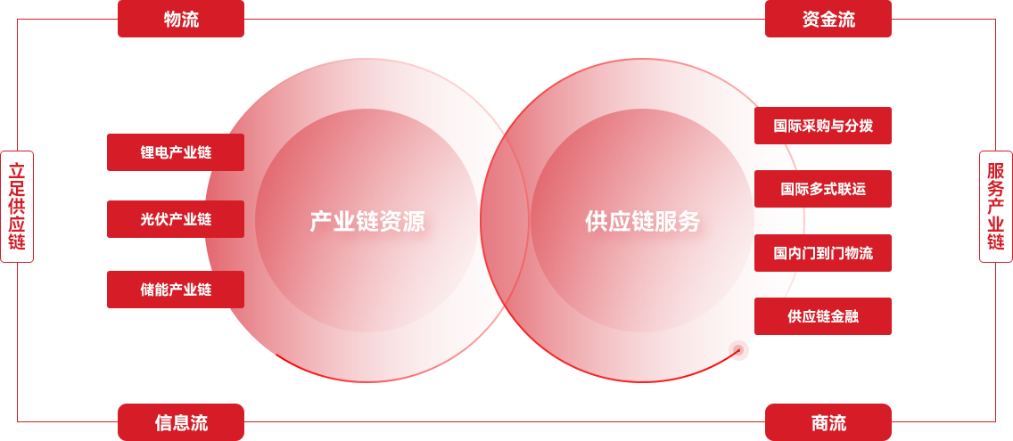 厦门象屿新能源有限责任公司专注锂电、光伏、储能三大赛道,聚焦锂、钴、镍、硅片、电池片、组件、储能等新能源产品,串联源头矿山-上游冶炼厂-中游加工厂-下游终端厂商,打通锂电光伏储能全产业链国内外采销渠道,配套全程物流仓储服务,同时发挥产业金融优势,提供各类金融支持和资本合作,为合作伙伴和客户提供新能源综合解决方案,致力于成为全球一流的新能源供应链服务运营商。