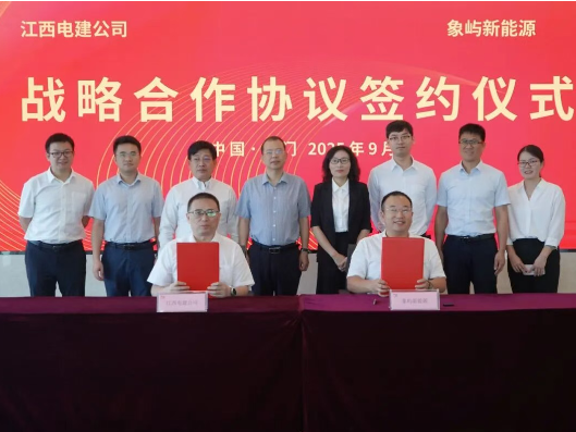 象屿新能源与中国电建集团江西省电力建设有限公司(以下简称“江西电建公司”)签署战略合作协议,象屿能源发展与智信能源科技有限公司(以下简称“智信能科”)签署合作框架协议。